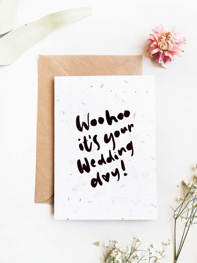 Woohoo it’s your wedding plantable greeting card by Blaithin. Eco-Friendly fun wedding card.